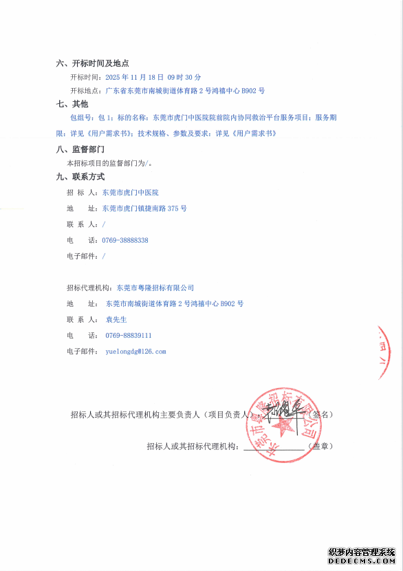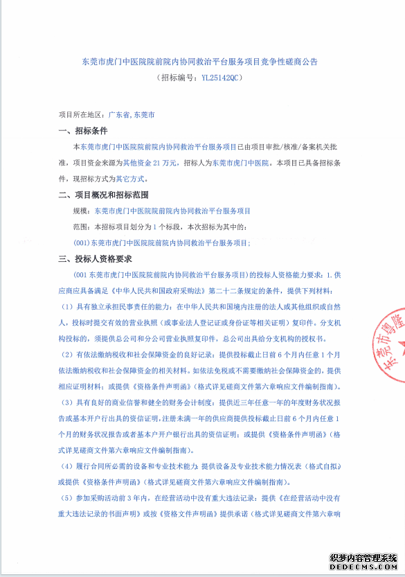 東莞市虎門中醫(yī)院院前院內協(xié)同救治平臺服務項目競爭性磋商公告